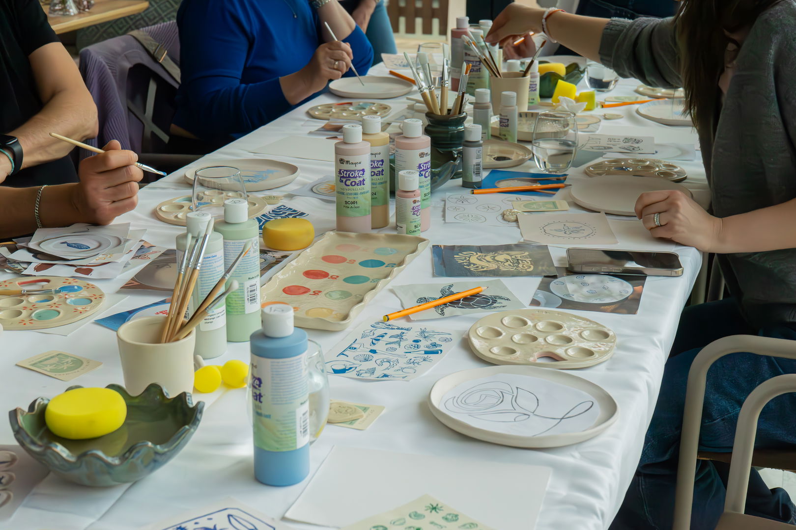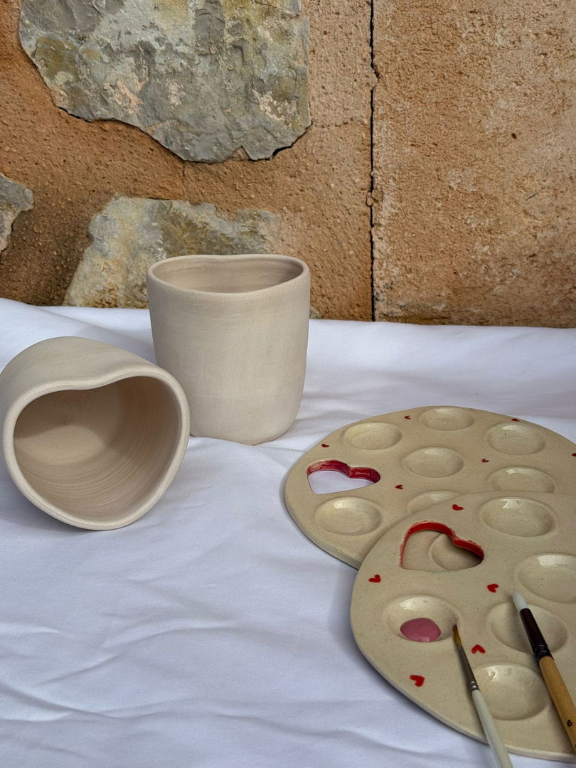 You will choose your own ceramic piece and personalise it at your own pace, with guided assistance throughout the workshop. The experience is complemented by a drink and a small tapa, creating the perfect atmosphere to slow down and enjoy the moment.